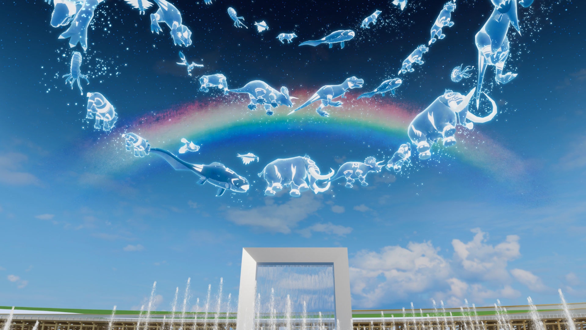 - The Water Showroom offers an immersive experience of water and air within the enchanted world of the "Under the Midnight Rainbow" water show, recreated for online visitors at the Yumeshima venue. Interactive elements enable visitors to participate in the story. By joining Ao, the main character, and her sidekick Dodo, the spirit of air and water, they can immerse themselves in being an island resident and gain a greater understanding of the importance of the bonds between water, air, and life. In doing so, they also learn how Daikin and Suntory view water and air as essential elements for a sustainable future.
