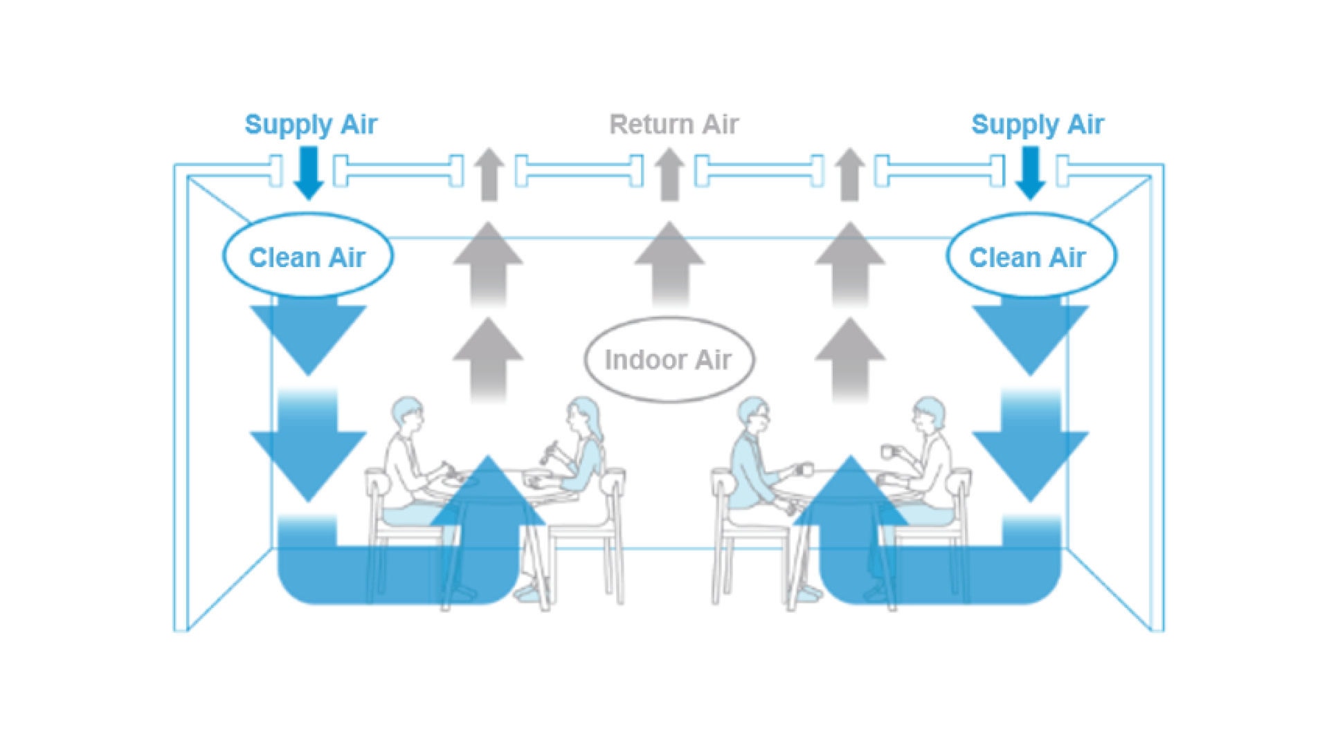 - Daikin's unique ‘ceiling-supplied displacement ventilation air conditioning’.