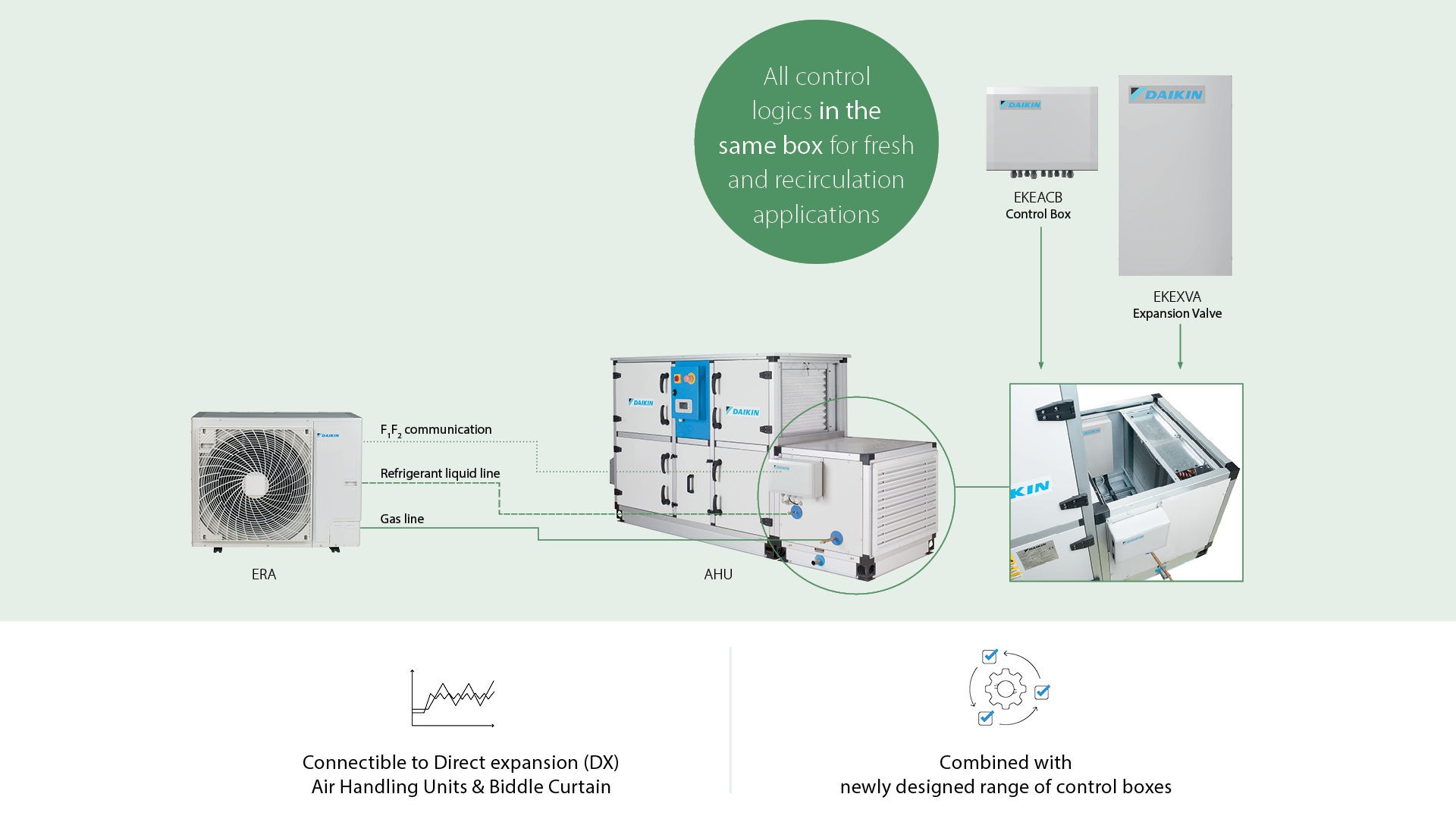 - For greater flexibility, a wide range of control methods for recirculation and fresh air applications is available in the common control box.