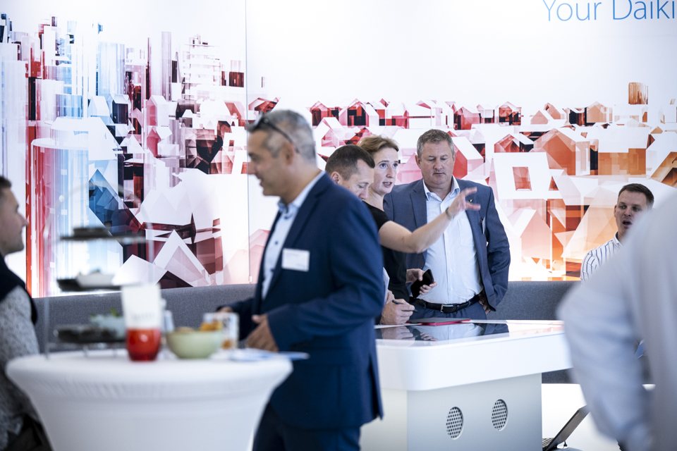 Auf dem Programm standen unter anderem Führungen durch das kürzlich eröffnete Experience Center und Co-Creation-Space "Your Daikin World", das verschiedenste HLKK-Lösungen via Augmented Reality erlebbar macht. Auch ein Besuch im dazugehörigen einzigartigen Trainingscenter wurde eingeplant.