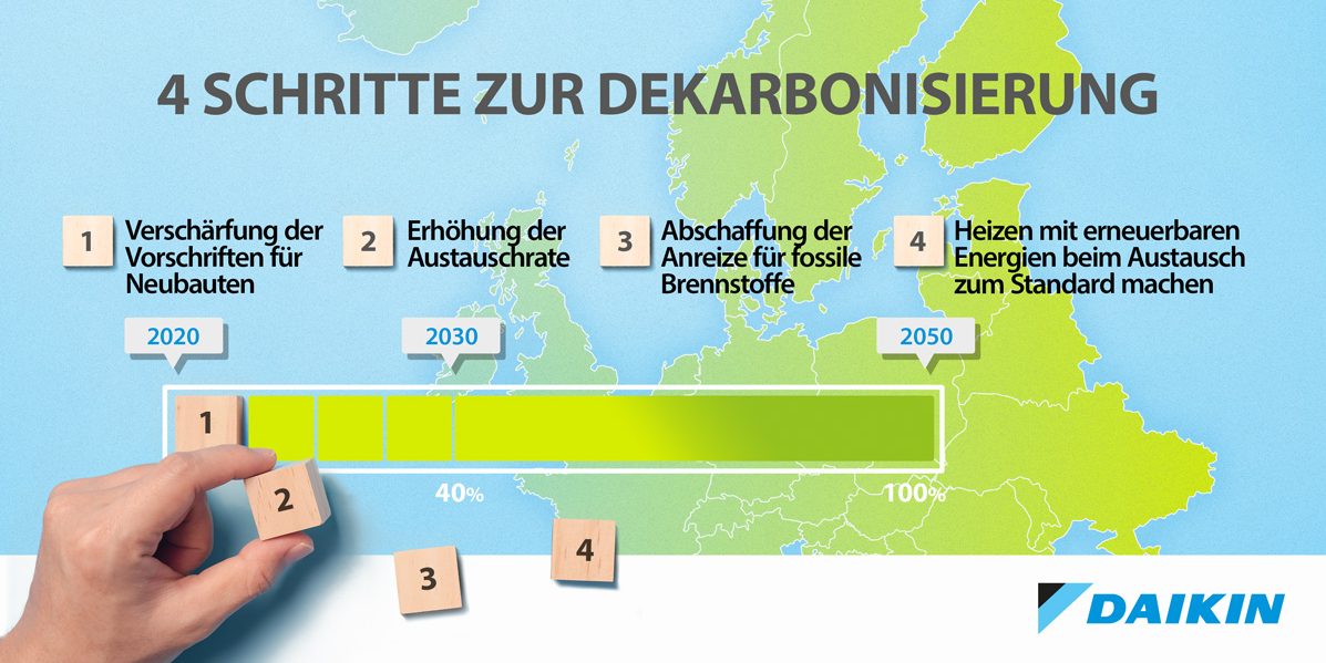 Die Investitionen und Wachstumspläne von Daikin Europe Heating and Renewables fügen sich in die Vision der Dekarbonisierung des Heizens von Wohngebäuden in ganz Europa ein. Da die Beheizung von Wohngebäuden mit fossilen Brennstoffen maßgeblich zu den Treibhausgasemissionen beiträgt, wird diese Umstellung Europa dabei unterstützen, seine ehrgeizigen Emissionsreduktionsziele für 2030 zu erreichen.