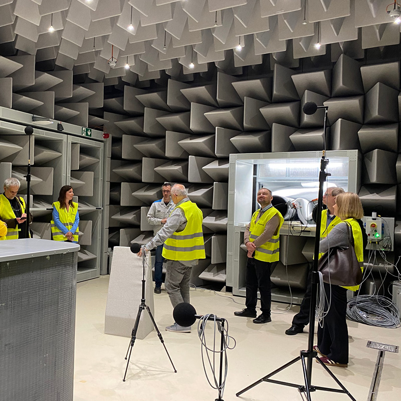 Während der Führung durch die Testeinrichtungen konnten Journalist:innen die F&E-Aktivitäten von Daikin live erleben – unter anderem im Schalltestraum. © Daikin