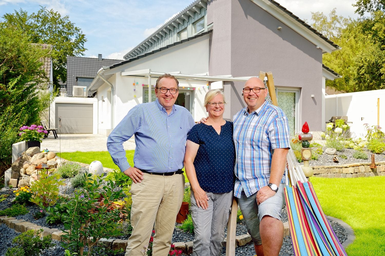 Neben der DAIKIN Altherma 3 hat sich Familie Büthe für ein Multisplit-Klimaaußengerät von DAIKIN zur Klimatisierung der Räume entschieden. Die Anlage, die ebenfalls mit dem Kältemittel R-32 betrieben wird, ist auch auf dem Garagendach aufgestellt. Das Gerät ist mit einem Swingverdichter ausgestattet, der sich durch einen niedrigen Geräuschpegel und geringen Energieverbrauch auszeichnet. An das Außengerät sind drei Inneneinheiten des Modells DAIKIN Emura angeschlossen, die im Wintergarten, im Wohn-Ess-Bereich und im Schlafzimmer für Klimatisierung und Luftreinigung sorgen. Das Gerät mit preisgekröntem Design verfügt über einen Luftreinigungsfilter, der Staubpartikel, Allergene und Bakterien erfasst sowie den ECONO Modus für einen verringerten Energieverbrauch. Im Schlafzimmer ist das Innengerät mit einem Schalldruckpegel von 19 dB(A) kaum zu hören. „Emura sorgt auch über Nacht für eine angenehme Kühle und beugt der Bildung von Feuchtigkeit vor. Wir haben ein optimales Raumklima, eine Voraussetzung für guten Schlaf“, freut sich Michaela Büthe. Die „Motion Detection Sensor“-Technologie lenkt den Luftstrom in Raumbereiche, in denen sich keine Personen befinden. Die Wohnraumlüftung eines anderen Herstellers ist im Hauswirtschaftsraum untergebracht und sorgt im ganzen Haus stets für angenehm frische Luft und einen kontrollierten Abtransport der Feuchtigkeit. Alle Systeme im Haus sind über eine integrierte vollelektronische Regelung verbunden, die Energieverbräuche werden permanent mittels eines EcoStats gemessen und online auf einer Web-Oberfläche ausgewertet. Dieses Steuer- und Messgerät von DAIKIN enthält umfangreiche Verbrauchsdarstellungen und überträgt diese Daten projektbezogen mittels Mobilfunk. Auch der tägliche Umgang mit der Klimatechnik wird digital geregelt.