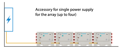 Serienmäßig (kein Sonderzubehör) muss jedes einzelne Modul an eine separate Spannungsversorgung angeschlossen werden. Es ist möglich, eine einzelne Einheit (aus bis zu vier Modulen) an ein und dieselbe Spannungsversorgung anzuschließen.