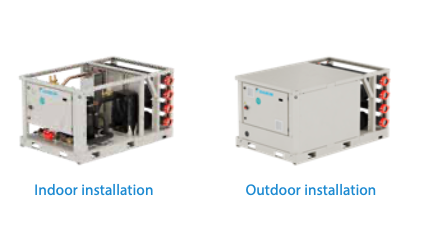 Die Module können sowohl im Gebäudeinneren – und bei Auswahl der Konfiguration „Reduzierter Schallpegel“ – als auch im Freien installiert werden. In der neuen Baureihe EW(W)(H)(L)T-Q A finden sich tatsächlich zwei unterschiedliche Schallschutzkonfigurationen, damit diese Geräte auch für Anwendungen mit strengeren Vorgaben zum Schallschutz, wie Wohngegenden, Hotels und Krankenhäuser, genutzt werden können.