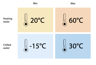 - Zentralheizung, gegebenenfalls als Wasserkreislaufkaskade mit einer Luft-Wasser-Wärmepumpe. Unabhängige Warmwasserbereitung (Einzelgerät oder ggf. übereinander angeordnete Geräteeinheit, die ausschließlich für die Warmwasserbereitung genutzt wird). Geräte können in Master/Slave mit bis zu 4 Modulen je Master betrieben werden